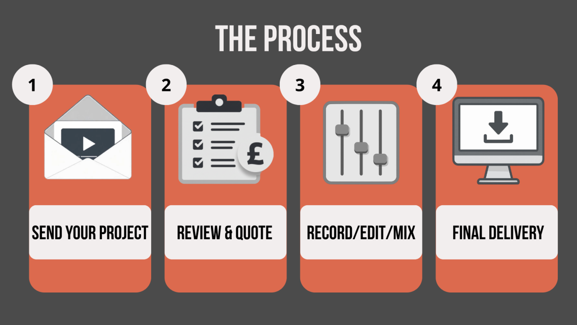 - Receive broadcast‑ready audio in your required formats and to the required delivery specifications.