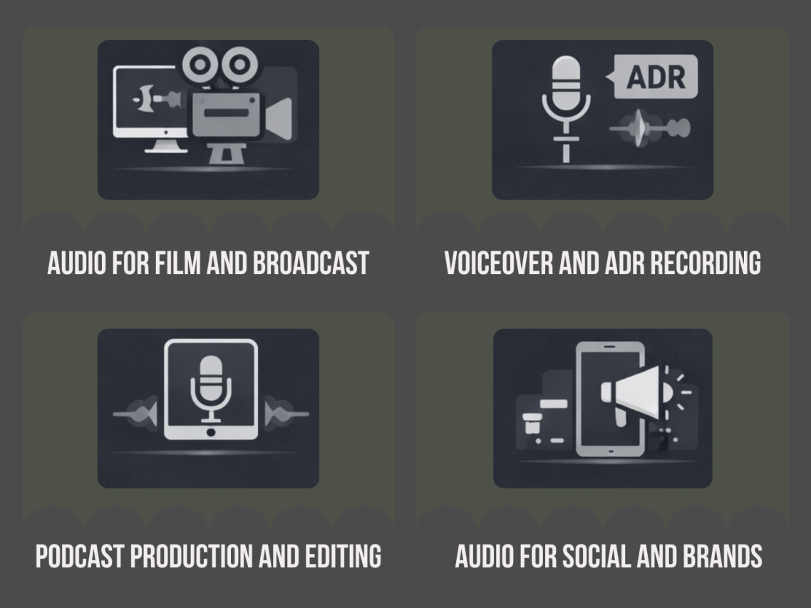 Expert audio post-production services covering sound editing, mixing, voiceover recording, ADR, and podcast production. Working across broadcast, film, social media, and brand platforms.